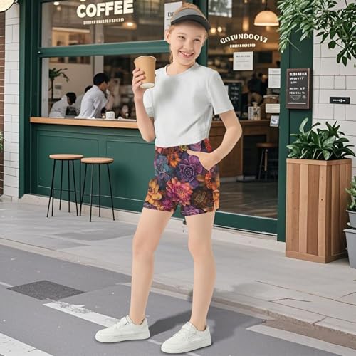 Girls Athletic Shorts Colorful Succulents Floral Print Youth Summer Casual Pajama Sleep Shorts with Pockets, X-Small 4