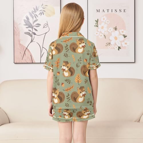 senya Smiling Squirrel with Acorns Satin Summer Pajama Sets Silk Short Sleeve Button Down Sleepwear 6