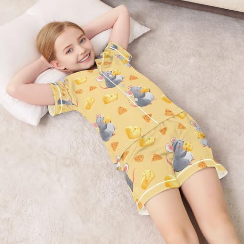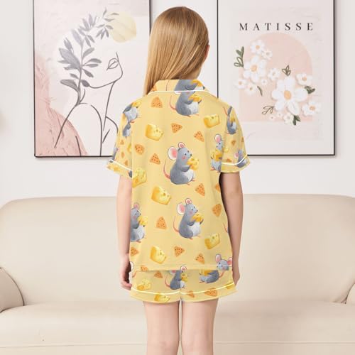 senya Mouse Eat Cheese Satin Summer Pajama Sets Silk Short Sleeve Button Down Sleepwear 6