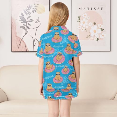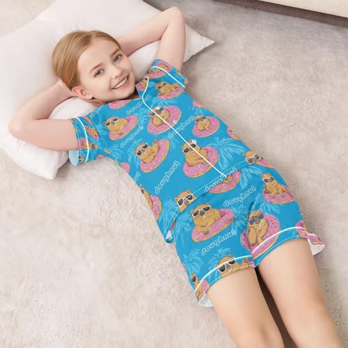senya Capybara Swimming Circle Satin Summer Pajama Sets Silk Short Sleeve Button Down Sleepwear 2