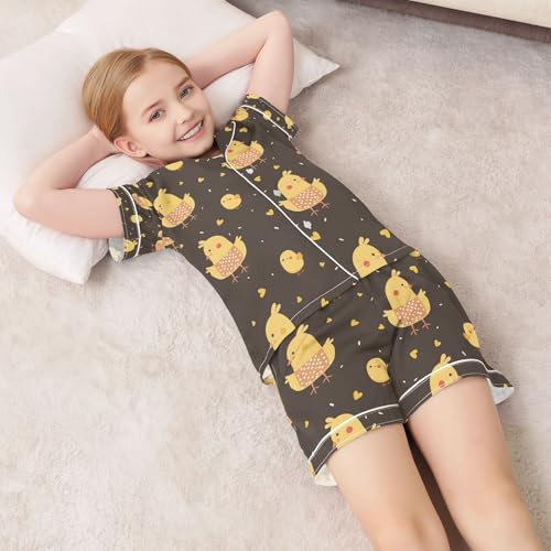 HOT ! senya Chicken with Apron Satin Summer Pajama Sets Silk Short Sleeve Button Down Sleepwear