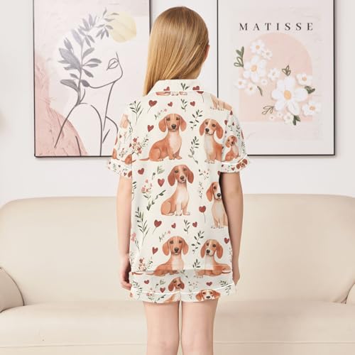 senya Cute Dachshund Flower Satin Summer Pajama Sets Silk Short Sleeve Button Down Sleepwear 4
