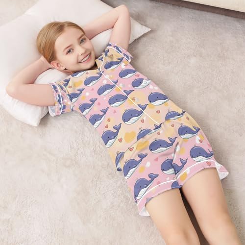 senya Blue Cute Whale Heart Satin Summer Pajama Sets Silk Short Sleeve Button Down Sleepwear 3