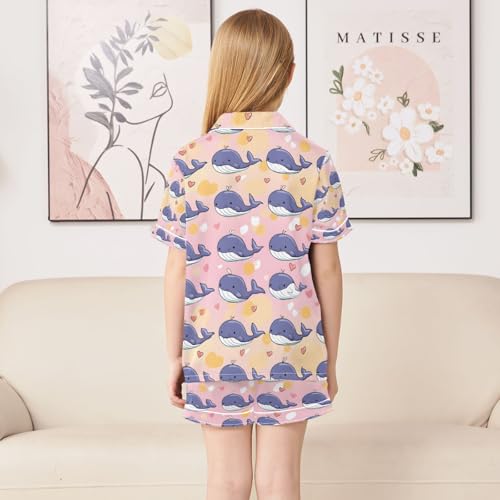senya Blue Cute Whale Heart Satin Summer Pajama Sets Silk Short Sleeve Button Down Sleepwear 2