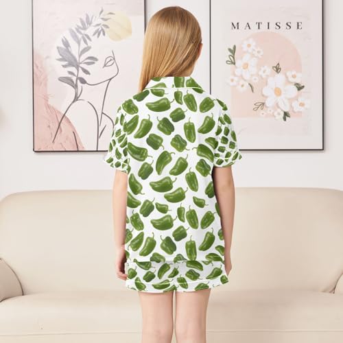 senya Green Pepper Satin Summer Pajama Sets Silk Short Sleeve Button Down Sleepwear 2