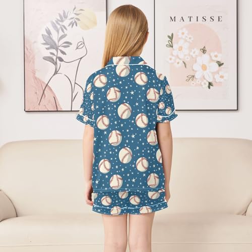 senya Baseball Star A Space Satin Summer Pajama Sets Silk Short Sleeve Button Down Sleepwear 1