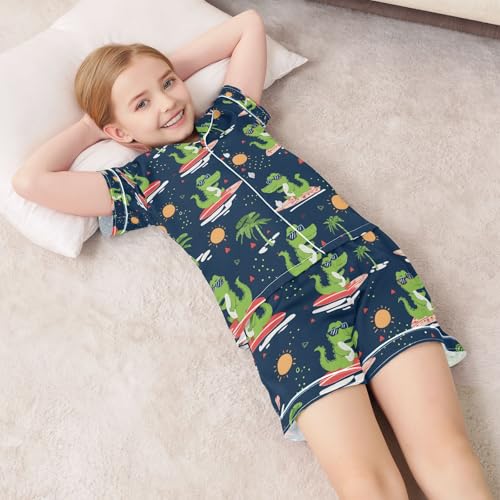 senya Green Crocodile Surfing Tropical Satin Summer Pajama Sets Silk Short Sleeve Button Down Sleepwear 5