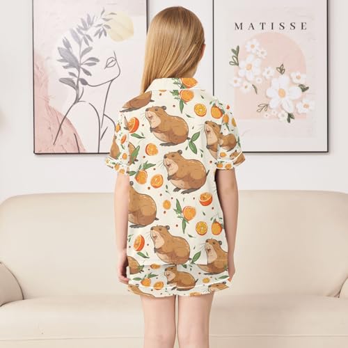senya Capybara Orange Fruit Satin Summer Pajama Sets Silk Short Sleeve Button Down Sleepwear 6