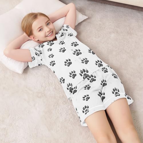 ALAZA Bear Paw Print Footprint Pajamas Satin Pajama Set Short Sleeve Button Down Sleepwear 6