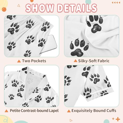 ALAZA Bear Paw Print Footprint Pajamas Satin Pajama Set Short Sleeve Button Down Sleepwear 7