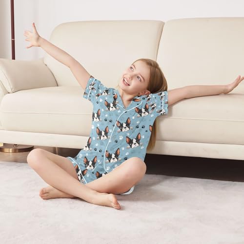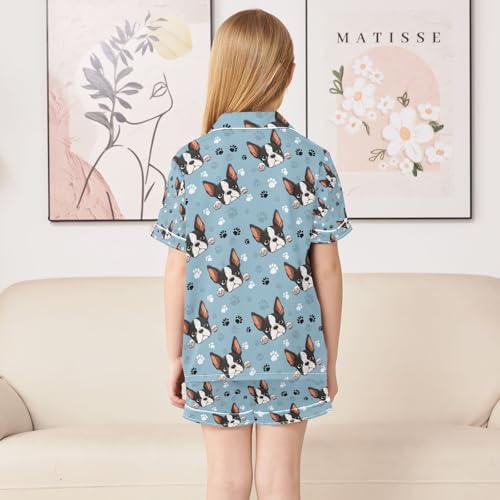 senya Puppy Head Cute Cartoon Satin Summer Pajama Sets Silk Short Sleeve Button Down Sleepwear 3