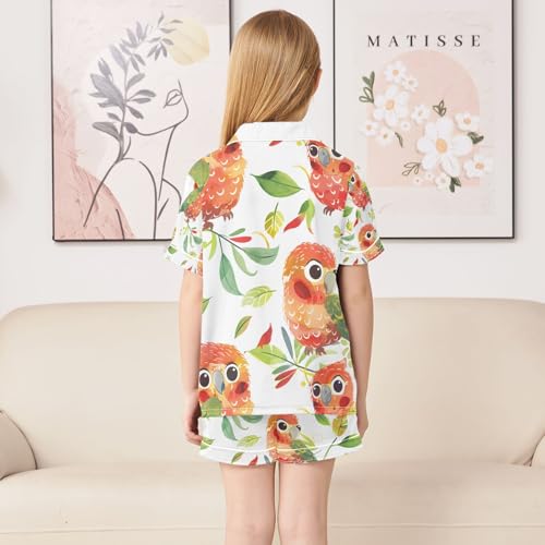 senya Cute Chubby Parrots Satin Summer Pajama Sets Silk Short Sleeve Button Down Sleepwear 4