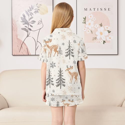 senya Deer with Tree Winter Satin Summer Pajama Sets Silk Short Sleeve Button Down Sleepwear 4
