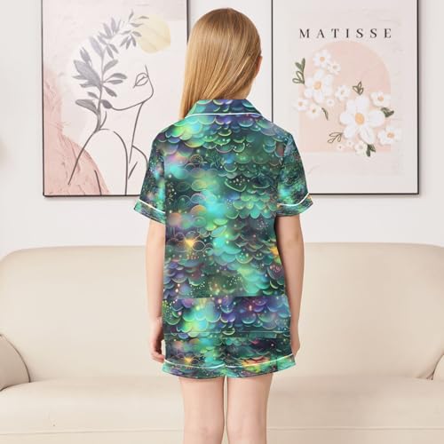 senya Glowing Fish Scales A Satin Summer Pajama Sets Silk Short Sleeve Button Down Sleepwear 4