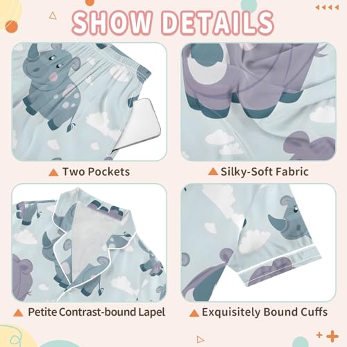 ALAZA Cute Rhinocero Cloud Pajamas Satin Pajama Set Short Sleeve Button Down Sleepwear 6