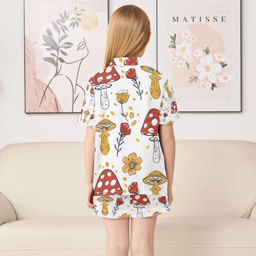 senya Mushroom and Sunflower 1 Satin Summer Pajama Sets Silk Short Sleeve Button Down Sleepwear 7