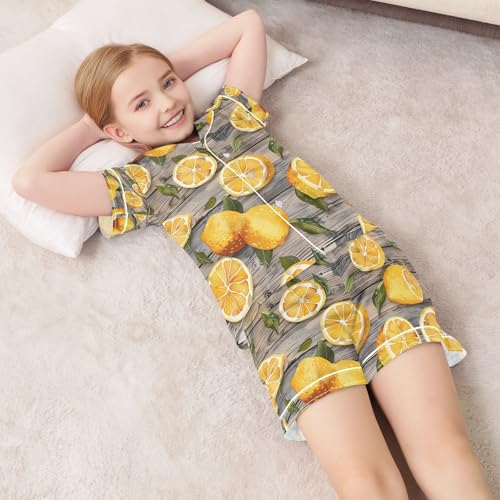 senya Lemon on Wood Satin Summer Pajama Sets Silk Short Sleeve Button Down Sleepwear 5