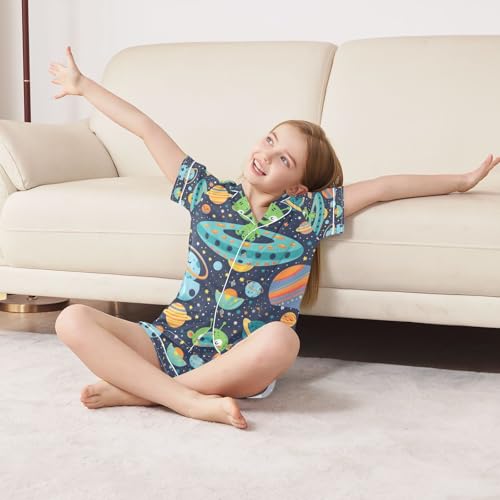 senya Laughing Green Alien Satin Summer Pajama Sets Silk Short Sleeve Button Down Sleepwear 6