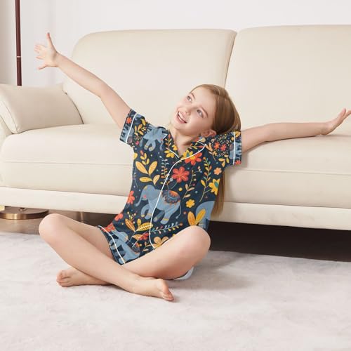 senya Elephants and Flowers 1 Satin Summer Pajama Sets Silk Short Sleeve Button Down Sleepwear 3