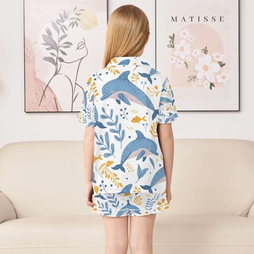 senya Cute Whale and Grass Satin Summer Pajama Sets Silk Short Sleeve Button Down Sleepwear 5