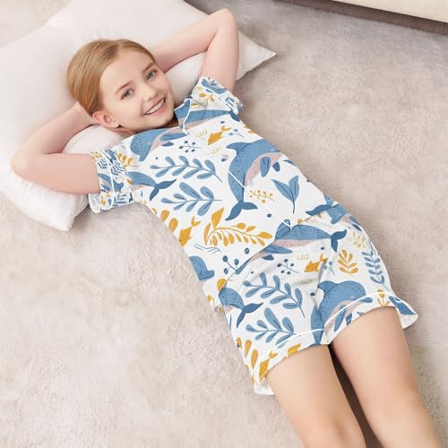 HOT ! senya Cute Whale and Grass Satin Summer Pajama Sets Silk Short Sleeve Button Down Sleepwear