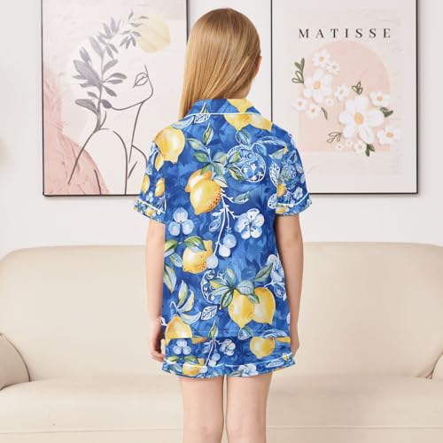 senya Watercolor Lemon Blue Satin Summer Pajama Sets Silk Short Sleeve Button Down Sleepwear 6