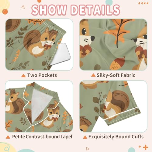 ALAZA Squirrel Animal Leaf Pajamas Satin Pajama Set Short Sleeve Button Down Sleepwear 4