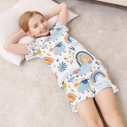 senya Rainbow Cute Sheep Satin Summer Pajama Sets Silk Short Sleeve Button Down Sleepwear 1