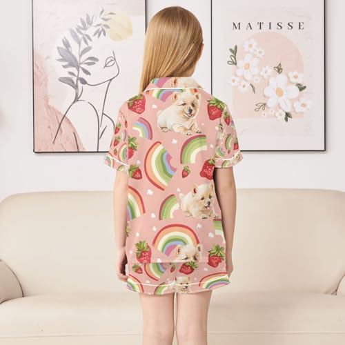 senya Strawberry Puppy Rainbow Satin Summer Pajama Sets Silk Short Sleeve Button Down Sleepwear 1