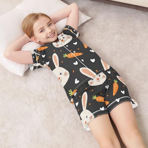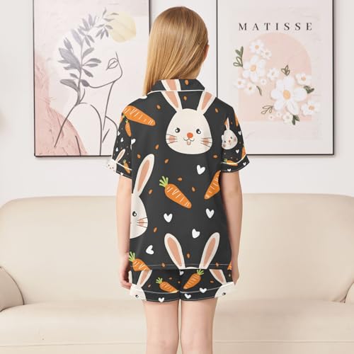 senya Face Rabbit Orange Satin Summer Pajama Sets Silk Short Sleeve Button Down Sleepwear 5