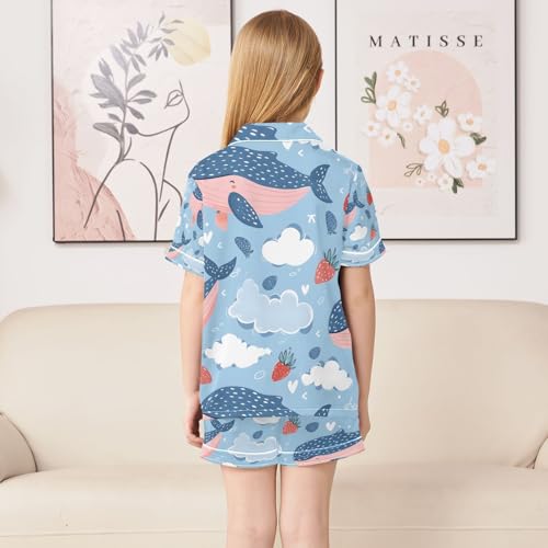 senya Whale Strawberry on Clouds Satin Summer Pajama Sets Silk Short Sleeve Button Down Sleepwear 2