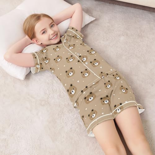 Little Bear Love Wave Pattern Summer Satin Pajama Set, Cute Button-Down Sleepwear Pj Set for Sleep Wears 1
