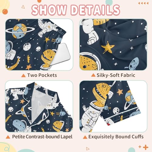 ALAZA Astronaut Dinosaur Star Blue Pajamas Satin Pajama Set Short Sleeve Button Down Sleepwear 7