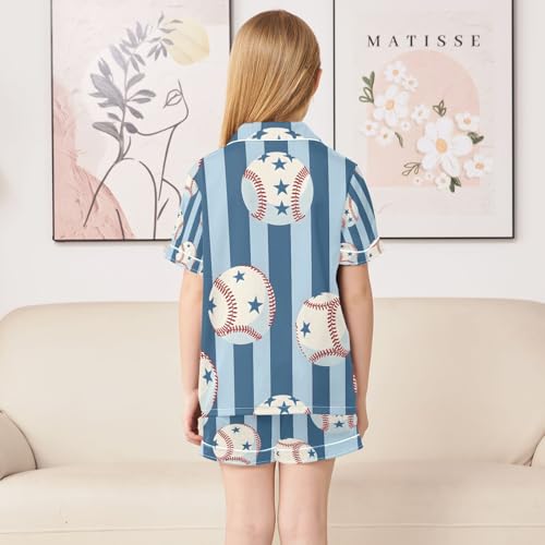 senya Baseball Blue Background Satin Summer Pajama Sets Silk Short Sleeve Button Down Sleepwear 2