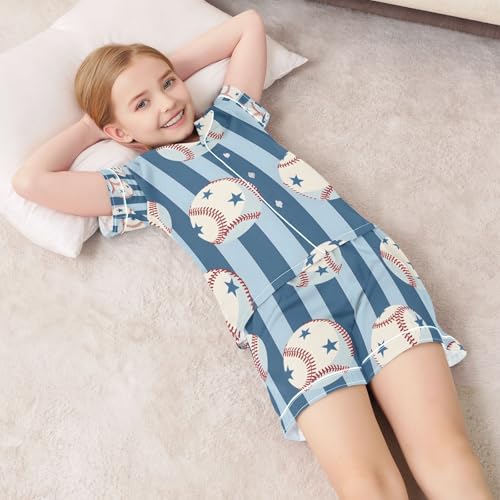 senya Baseball Blue Background Satin Summer Pajama Sets Silk Short Sleeve Button Down Sleepwear 1