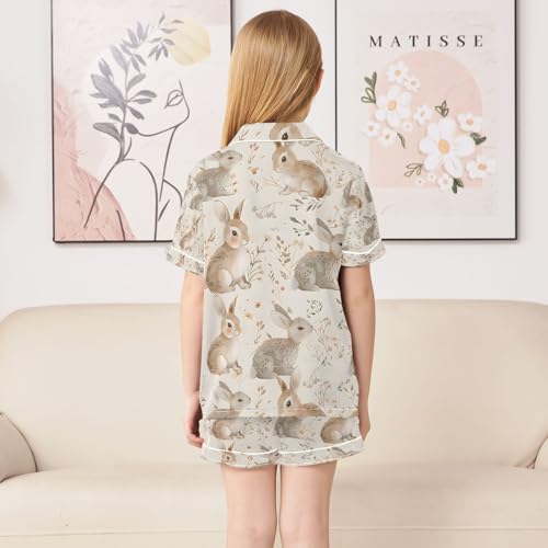 senya Rabbit and Floral Satin Summer Pajama Sets Silk Short Sleeve Button Down Sleepwear 6