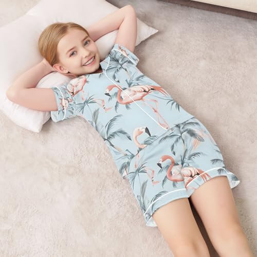 senya Flamingos Palm Trees A Satin Summer Pajama Sets Silk Short Sleeve Button Down Sleepwear 4