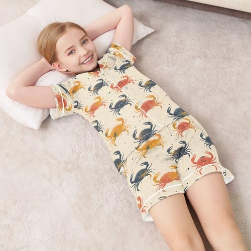 Retro Crabs Summer Satin Pajama Set, Cute Button-Down Sleepwear Pj Set for Sleep Wears 4