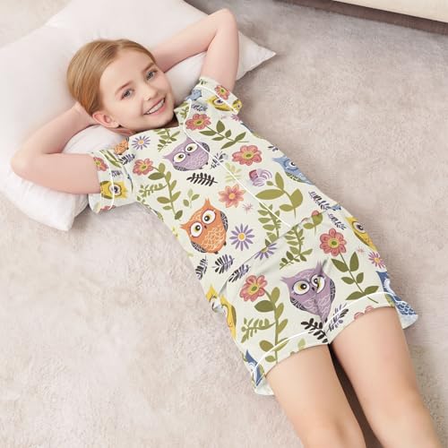 ALAZA Owl Bird Flower Pajamas Satin Pajama Set Short Sleeve Button Down Sleepwear 1