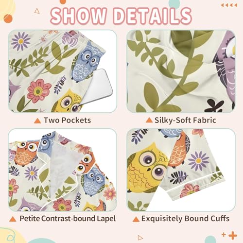 More information about ALAZA Owl Bird Flower Pajamas Satin Pajama Set Short Sleeve Button Down Sleepwear