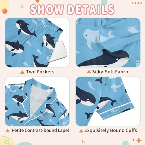 Cartoon Killer Whale Style Summer Satin Pajama Set, Cute Button-Down Sleepwear Pj Set for Sleep Wears 2