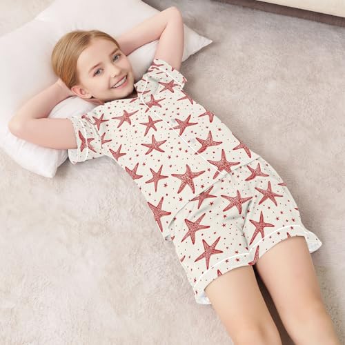 More information about Starfish Red Prints Pattern Summer Satin Pajama Set, Cute Button-Down Sleepwear Pj Set for Sleep Wears