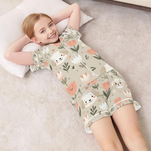 senya Cute Simple Dog Head Satin Summer Pajama Sets Silk Short Sleeve Button Down Sleepwear 1