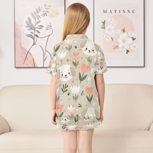senya Cute Simple Dog Head Satin Summer Pajama Sets Silk Short Sleeve Button Down Sleepwear 4
