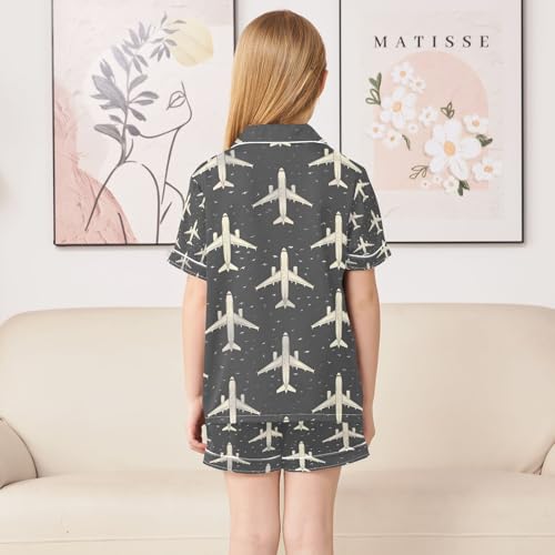 senya Plane Outlines Shadows Satin Summer Pajama Sets Silk Short Sleeve Button Down Sleepwear 6
