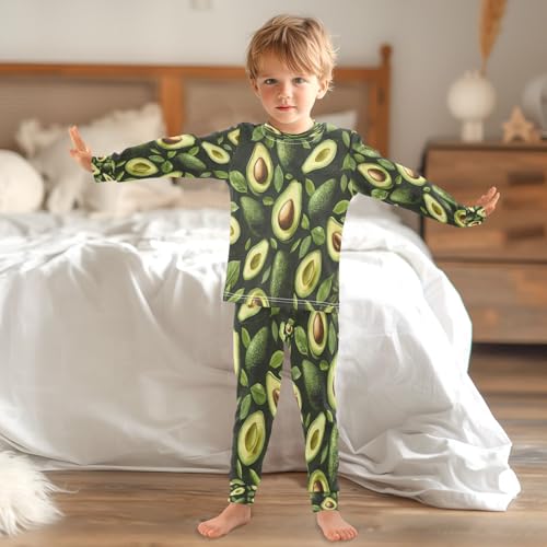 Pajama Sets Long Sleeve Green Avocado Pattern Soft Comfy Sleepwear 2 Piece PJS 3-8T 2