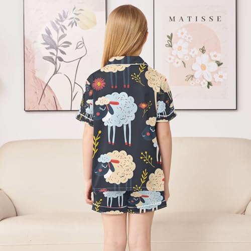senya Sheep Black Satin Summer Pajama Sets Silk Short Sleeve Button Down Sleepwear 1