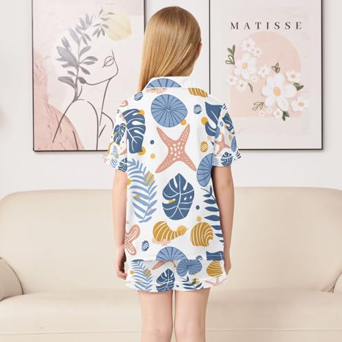 senya under Sea Plants Satin Summer Pajama Sets Silk Short Sleeve Button Down Sleepwear 3