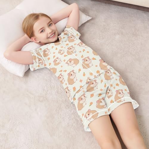 HOT ! Hamster Print Summer Satin Pajama Set, Cute Button-Down Sleepwear Pj Set for Sleep Wears