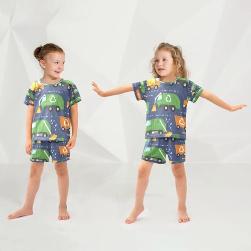 Pajama Sets Short Sleeve Recycling Trucks and Equipment Soft Cotton Summer Sleepwear 2 Piece PJS Size 5-14T 1